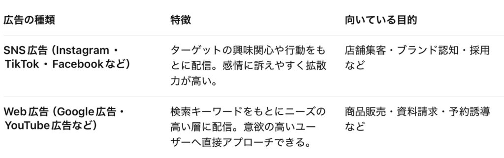 SNS広告は「まだお店を知らない層」へのアプローチに強く、